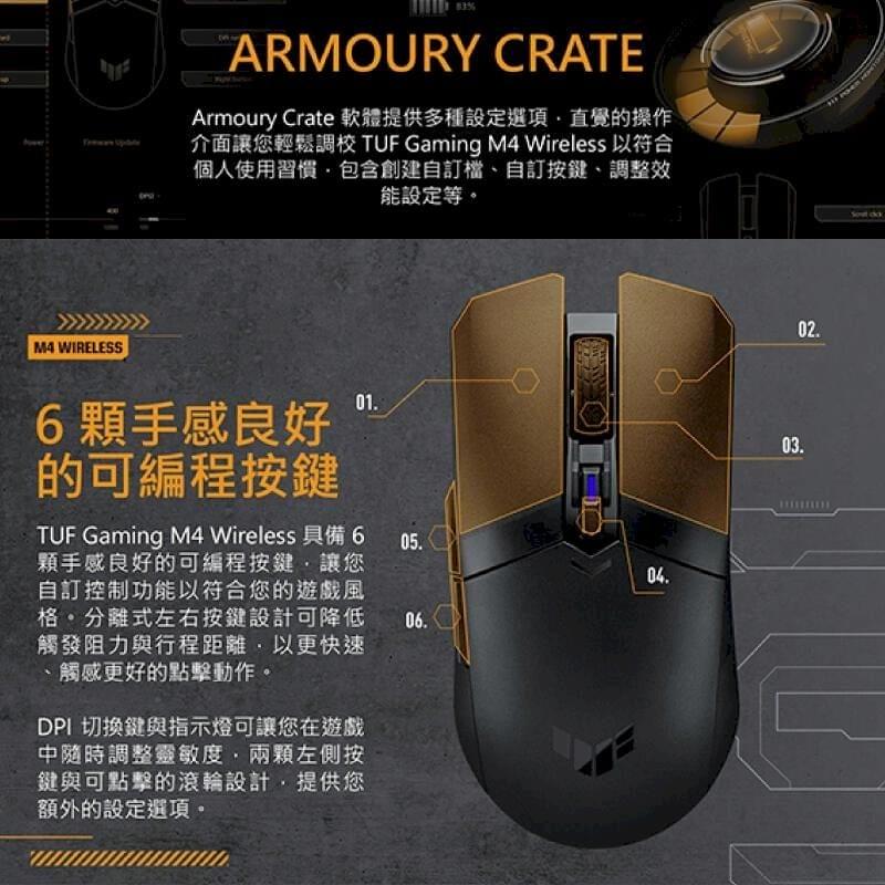 TUF GAMING M4 WIRELESS 是一款兼具輕量化與性能的多功能滑鼠,