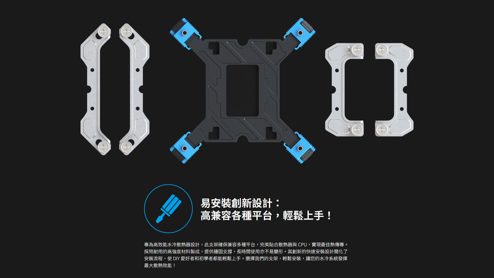 ✦ 支援 Intel LGA 1851、AMD AM5 等最新處理器插槽,搭載強固安裝支架與快速安裝設計