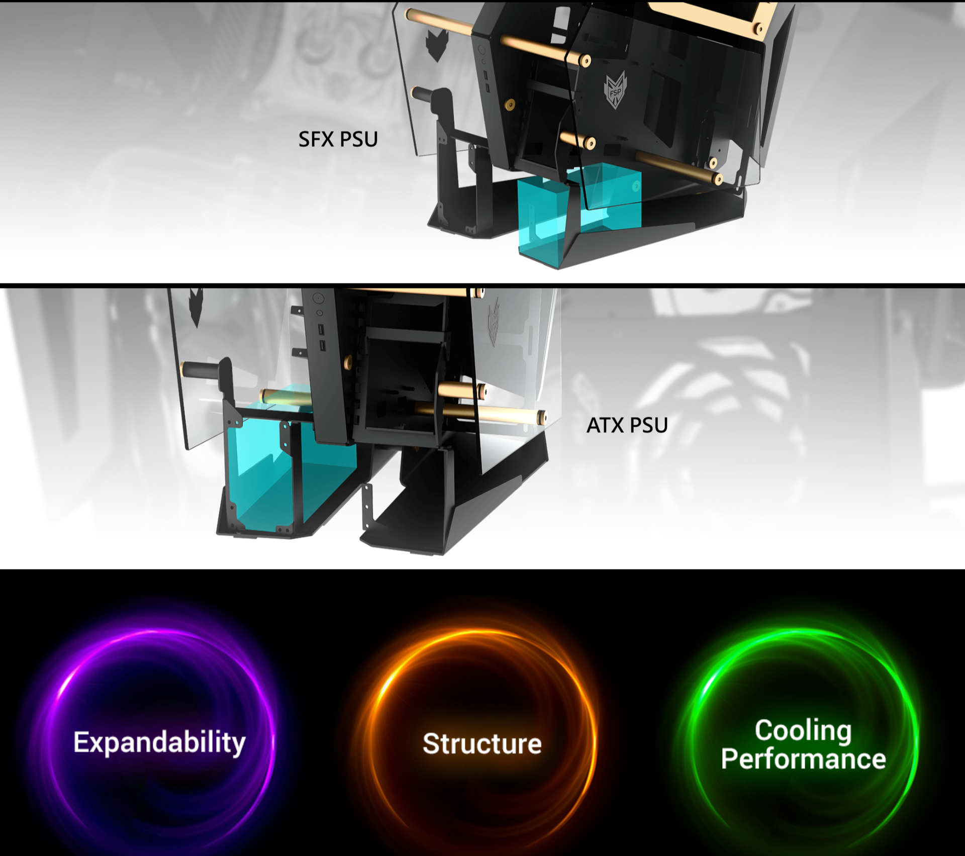 ✦ 雙主機系統,支援 E-ATX 及 ITX 尺寸