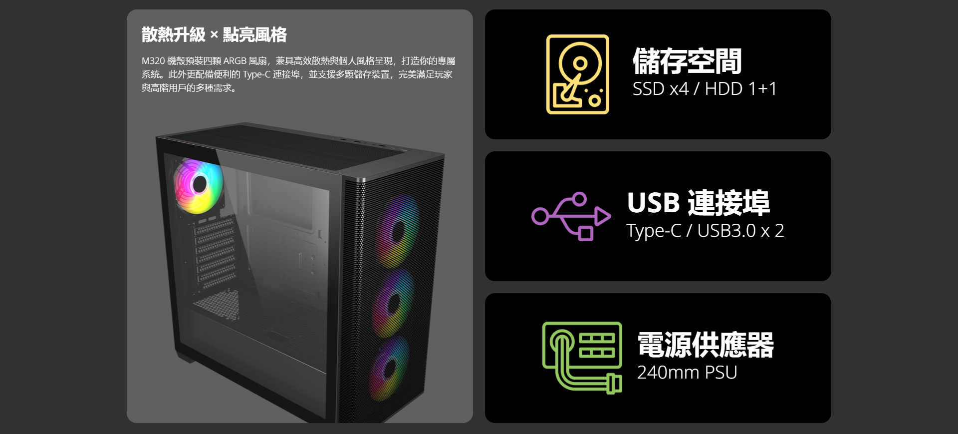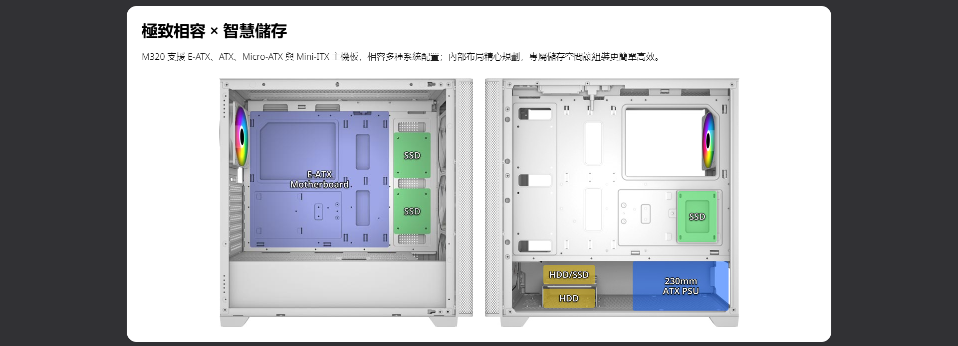 FSP 全漢【 M320 】鋼化玻璃 ATX 白 機殼