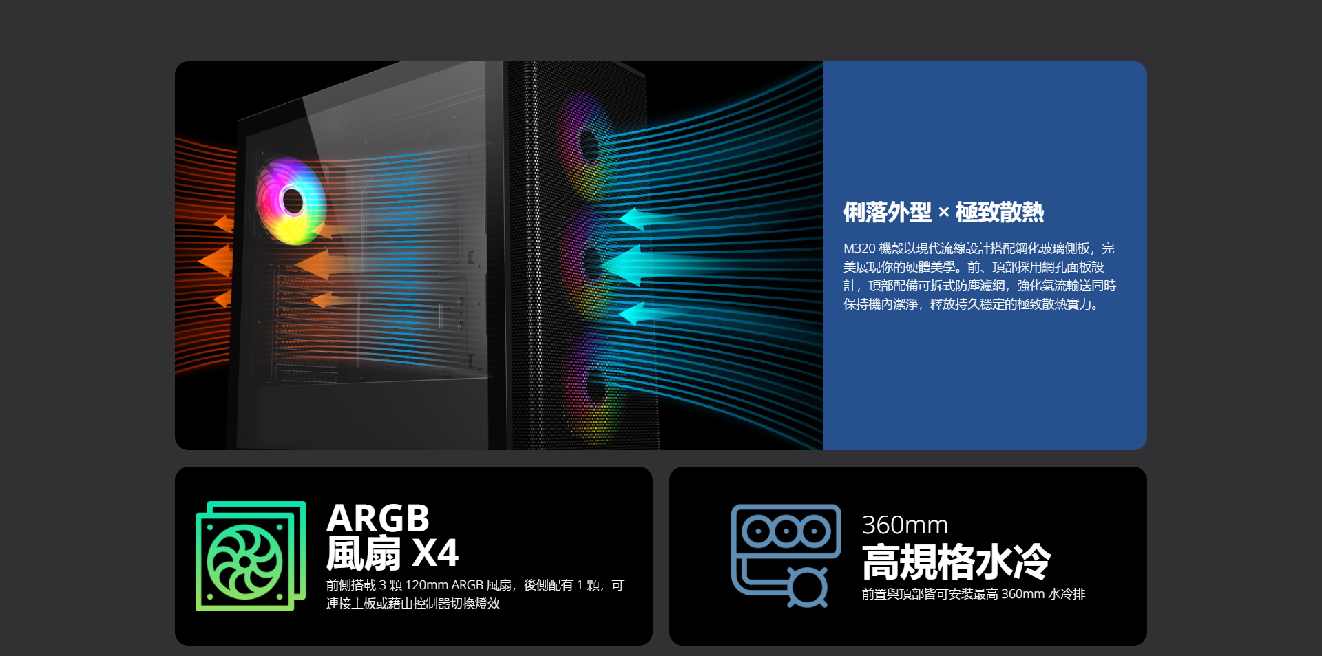風扇支援: 前: 120mm x 3 or 360mm 水冷
