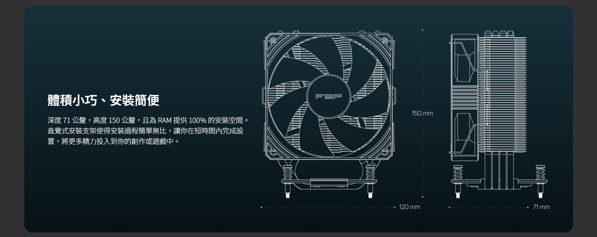 散熱器尺寸(長x寬x高):120 x 45 x 150 mm