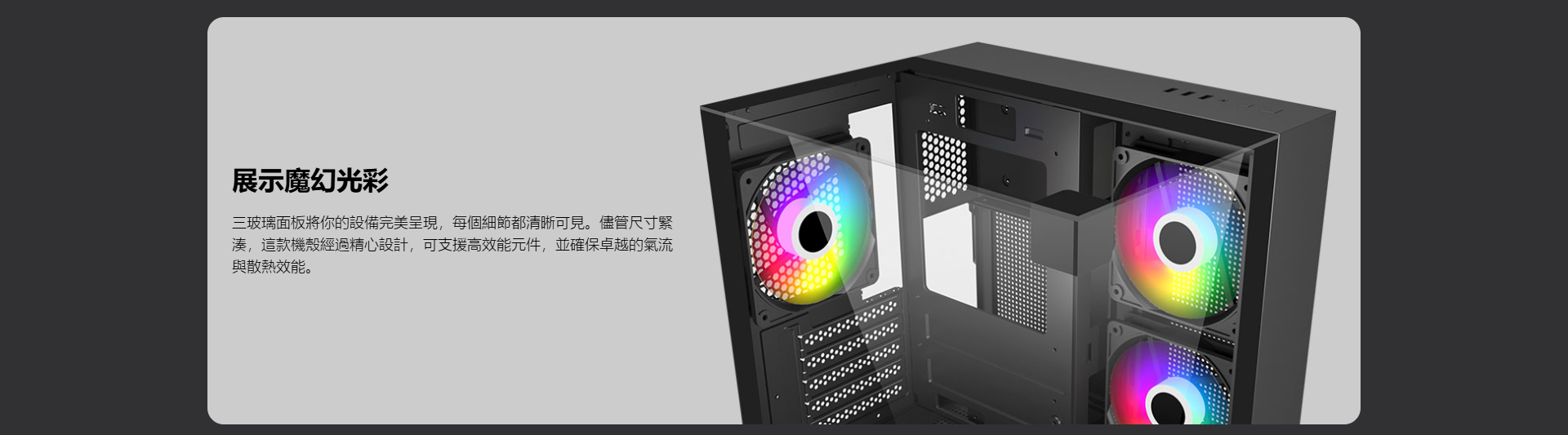 ✦ 三面玻璃面板,優雅展示您的喜愛組件