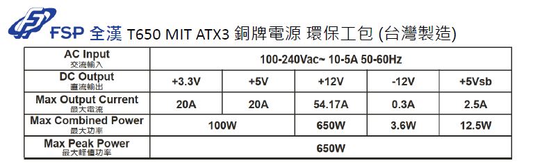 FSP 全漢【 T650 】MIT ATX3 銅牌電源 環保工業包裝