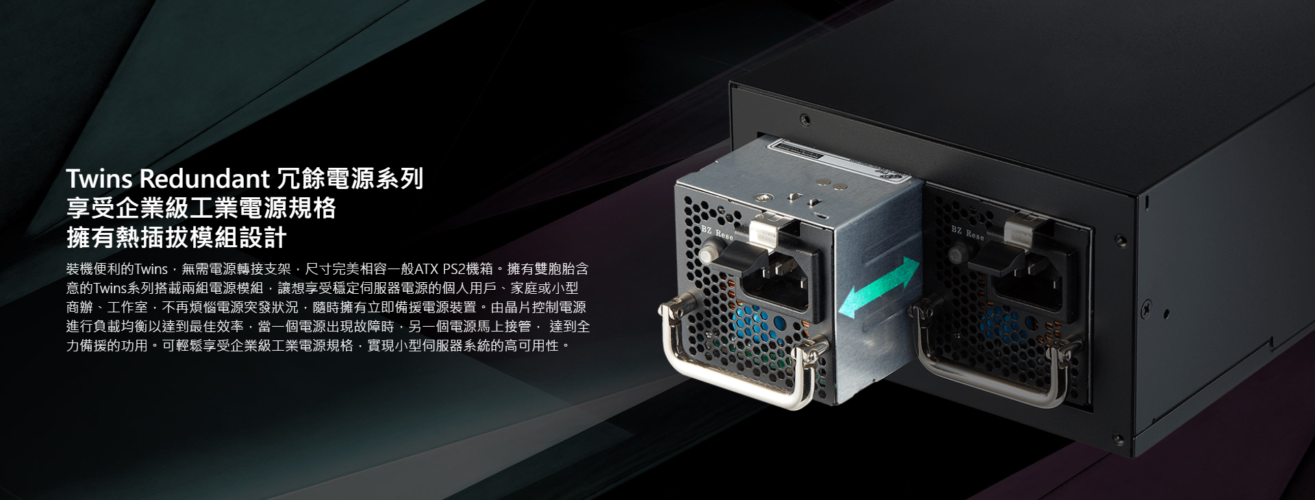 ✦ 熱插拔設計,在電腦正常運行下可直接抽換單組電源