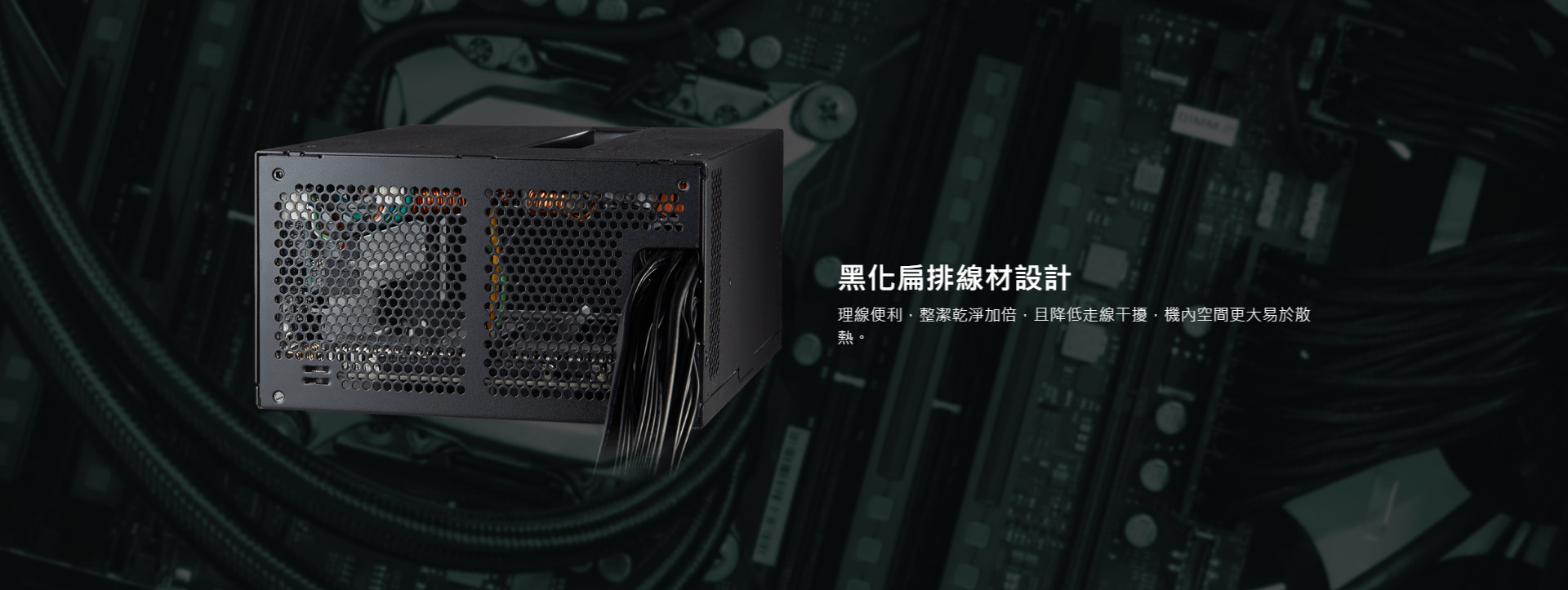 ✦ 黑化扁排線材設計,降低走線干擾,擴大機內空間更易於散熱