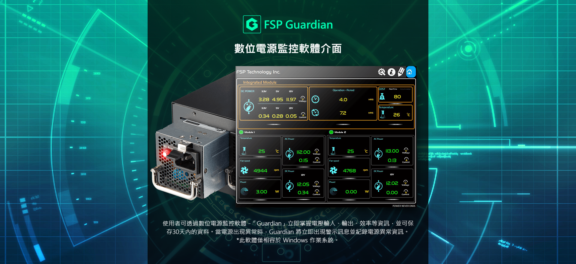 ✦ 數位監控介面「 Guardian 」軟體,隨時掌握電源供應器資訊