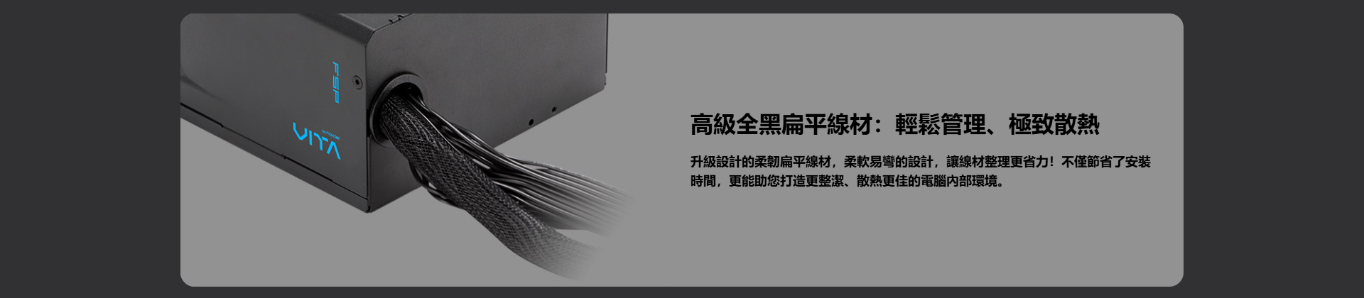 ✦ 全黑化優質扁線材,讓走線更輕鬆