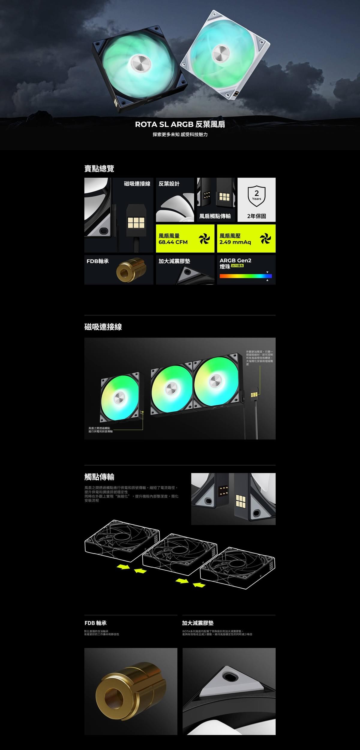 【TRYX】ROTA SL Gen1/2 ARGB 靜音風扇 12公分 3入 黑 反轉 (免線串聯/FDB/2年保)